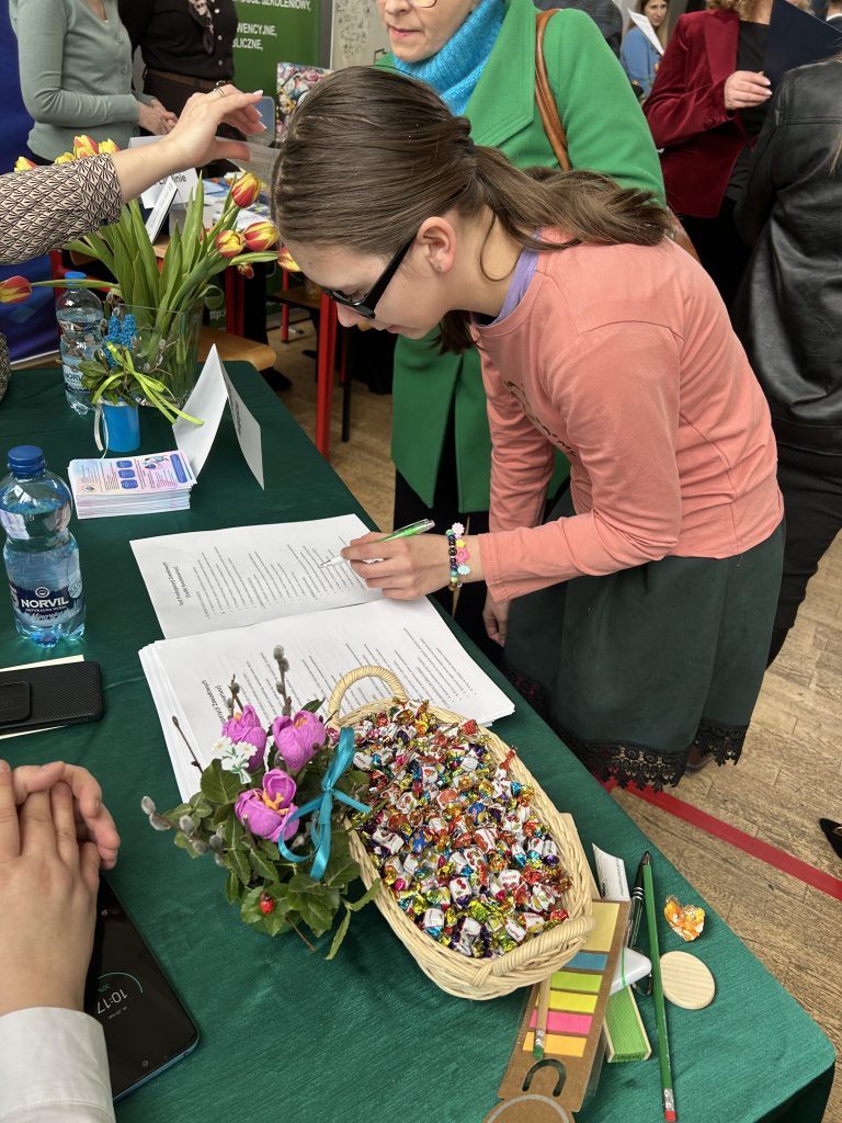 Ponadto specjaliści poradni prowadzili bezpośrednie rozmowy z uczestnikami targów, przybliżając charakter pracy psychologów, pedagogów oraz doradców zawodowych, a także wyjaśniając, na czym polega proces diagnozy i udzielania pomocy. Uczniowie mogli dowiedzieć się, w jakich sytuacjach warto skorzystać ze wsparcia poradni oraz jakie korzyści niesie wczesne rozpoznanie trudności i predyspozycji.